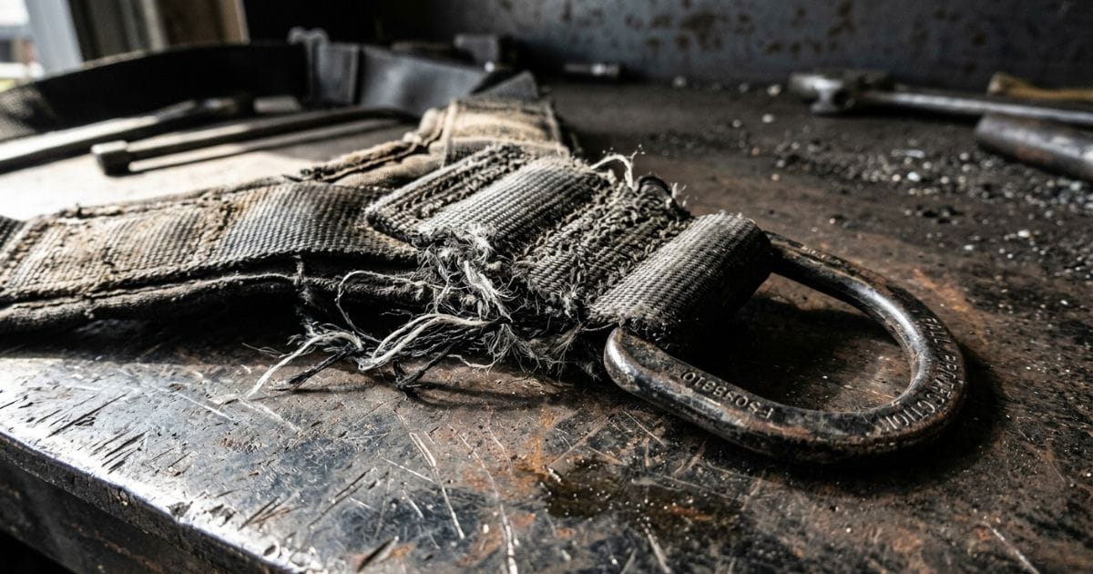 A safety coordinator ran a quarterly fall protection inspection. Found fraying on the dorsal D-ring stitching. Tagged it. Wrote it up. Told the foreman.